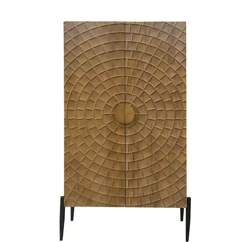 Armario dos puertas de madera tallada con estantes interiores de estilo étnico. Un armario muy versátil que puedes colocar en el dormitorio, en el comedor para guardar vajilla y cristalería o en el recibidor.