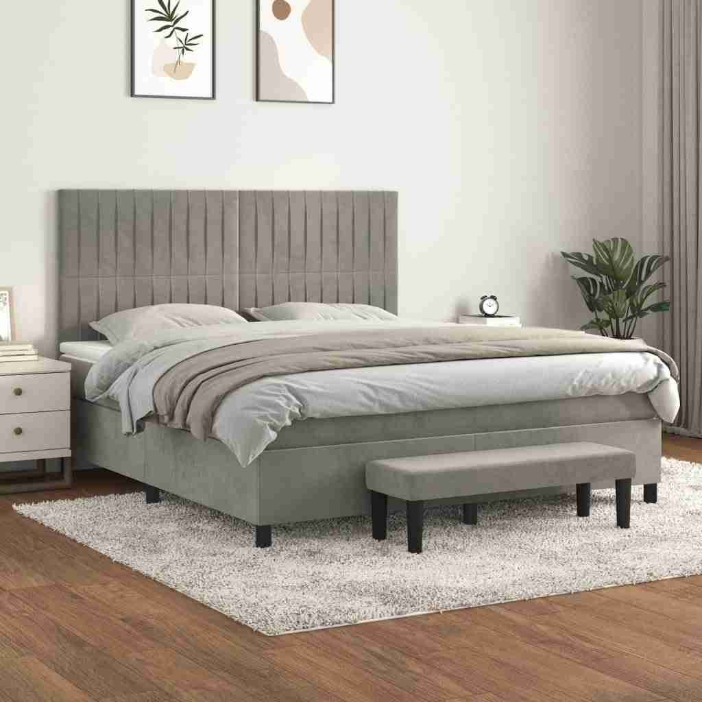 Utiliza esta Cama box spring con colchón rayas para disfrutar de un sueño reparador. Te ofrece la máxima relajación y un sueño placentero. Terciopelo suave: El terciopelo es una tela suave y lujosa, reconocida por su denso pelo de fibras cortadas de forma uniforme que tienen una suave pelusa.