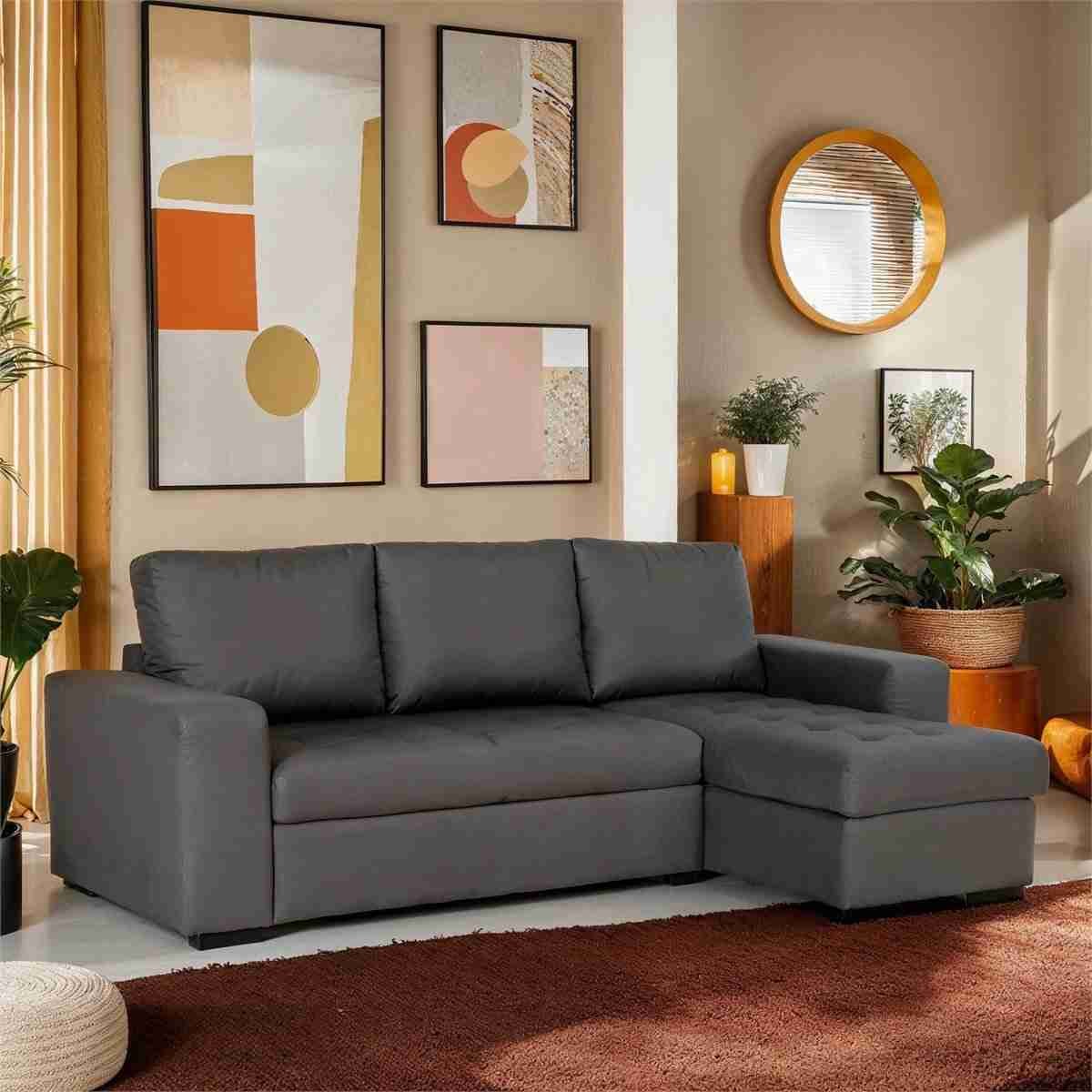 Con la chaise longue HARRY, podrás disfrutar de la versatilidad y practicidad de tener un sofá, una chaise longue y una cama en un solo producto. Esta chaise longue con cama cubrirá todas tus necesidades de descanso y comodidad. Su diseño reversible te permite adaptarla a tu espacio, ya sea colocándola a la izquierda o a la derecha según te convenga.