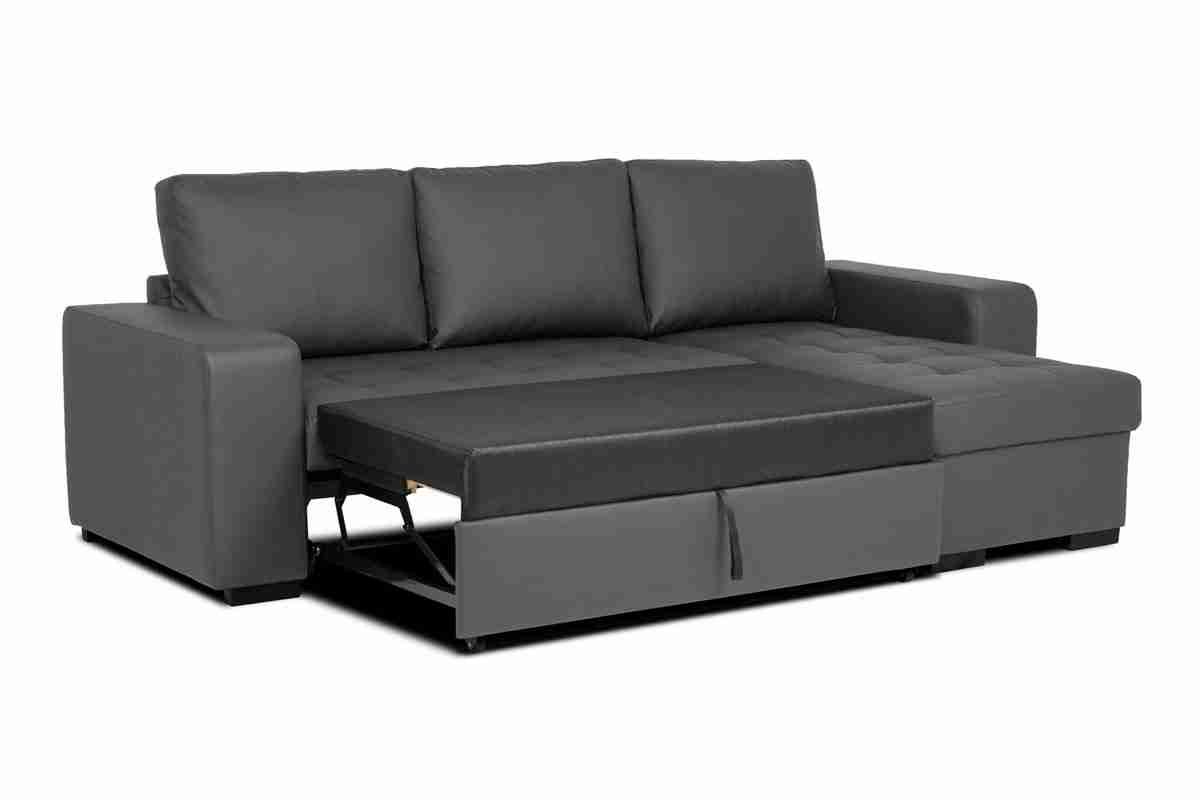 Chaise longue reversible piel sintética con cama HARRY color gris