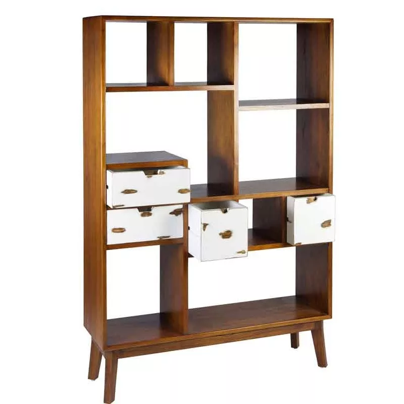 Mueble librería con un bonito diseño que podrás combinar con estilo nórdico, rústico y colonial. El detalle de los cajones incorporados en color blanco decapado, sale de los modelos convencionales.